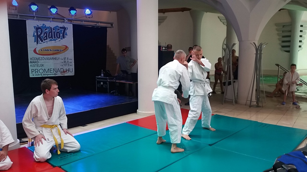2016. október 08-án meghívást kaptunk a Rádió 7 szerkesztőségétől, hogy vegyünk részt a Magyar Fürdőfesztivál Napján a Hagymatikumban. A felkérésre természetesen igent mondtunk és a Kelemen Ryu Ju Jistu, a Brazil Jiu Jitsu és a Fitball szakosztállyal képviseltük a Hódmezővásárhelyi Harcosok Klubját és a Mozgás Központot.