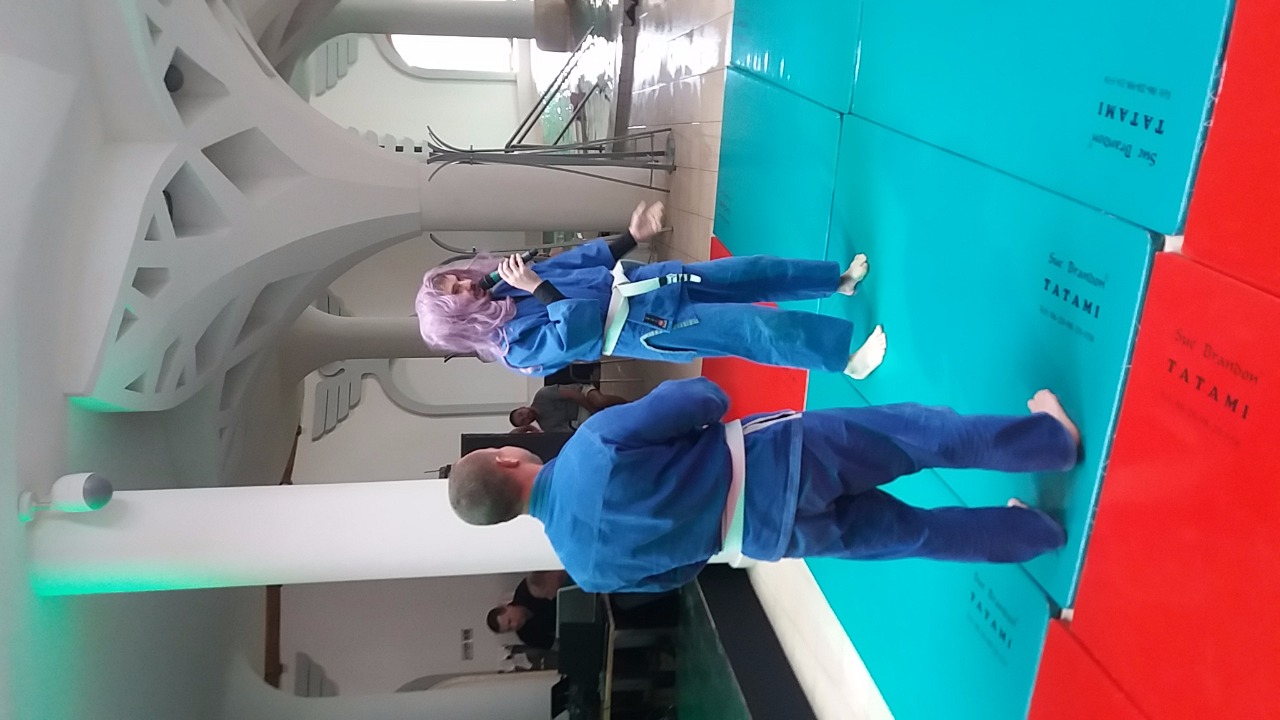 A Kelemen Ryu Ju Jitsu most is nagy érdeklődésnek örvendett, a fiúk igen látványos bemutatóban részesítették a jelenlévőket. A hasznos üönvédelmi technikákat Ancsin Gábor barátunk kommentálta, ahogyan az ezt követő Brazil Jiu Jitsu bemutatót is. Gábor, hogy minél hiteleseebben be tudja mutatni, hogy milyen hatékony és hasznos lehet a hölgyek számára a Brazil Jitsu, még egy szép lila parókát is felöltött.